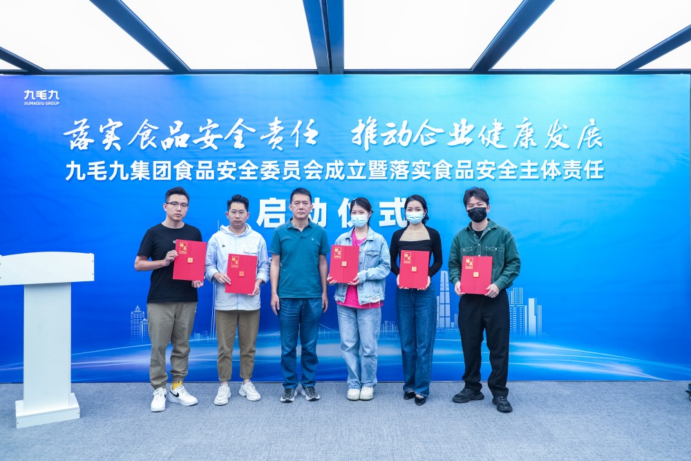 11月24日九毛九集团成立食品安全委员会,由集团食安主要负责人担任委员会主任,同时由集团食品安全委员会正式任命食品安全总监,各品牌及供应链中心设立相应食品安全管理人员,建立了以“企业主要负责人—食品安全总监—食品安全员”构成责任体系。