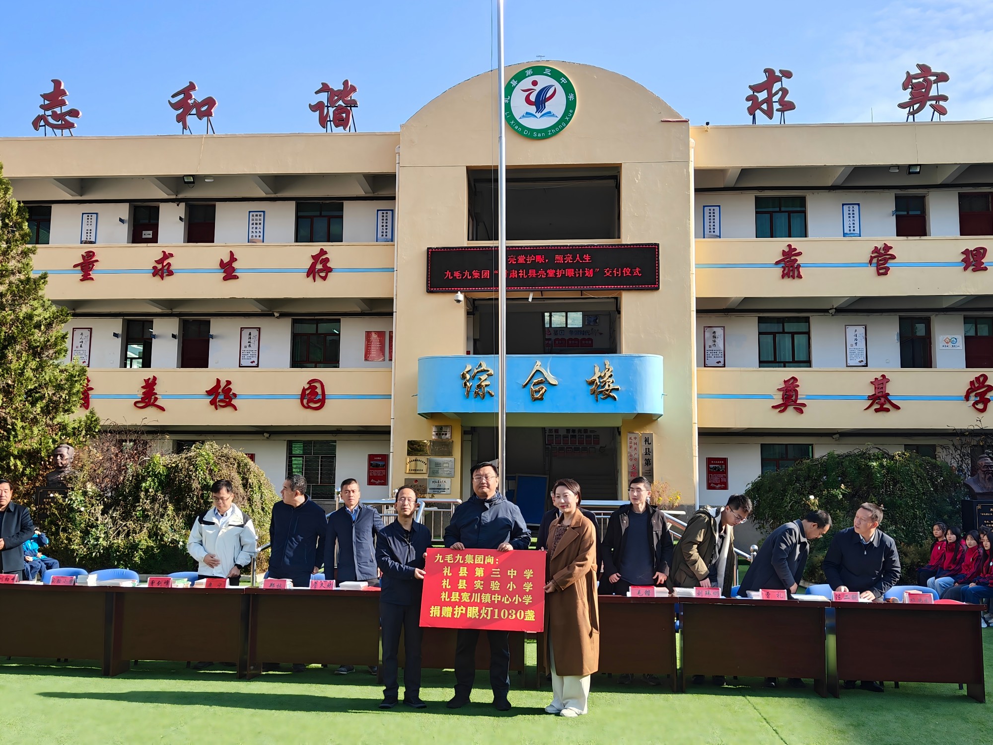 2024年11月6日,九毛九集团“亮堂护眼教室”计划验收仪式在甘肃省礼县第三中学举行。此次活动为当地三所学校的99间教室安装了1030套符合新国标的LED护眼灯,为孩子们创造了一个更加健康、舒适的学习环境。
